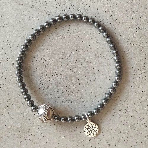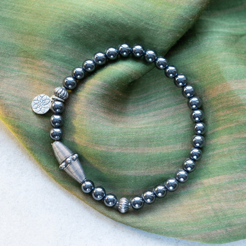 Vihreäsävyinen rannekoru pronssikoristeella